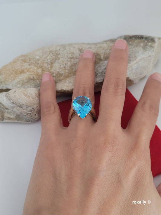 ❤️10k Size 7.25 Gorgeous Solid Yellow Gold Drop-Shaped Blue Topaz Ring!