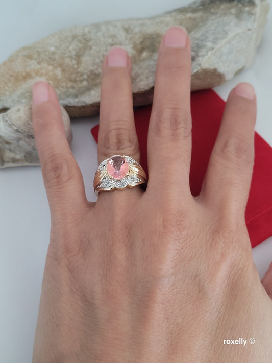 ❤️10k Size 7.5 Beautiful Solid Yellow Gold Pink Tourmaline and Diamond Ring!