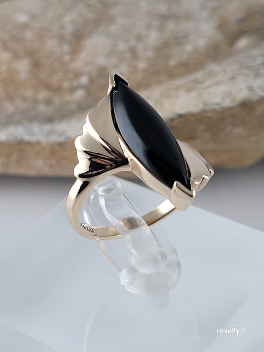 10K Yellow Gold Onyx Gemstone Bypass Ring Size 6.25 Solid Gold