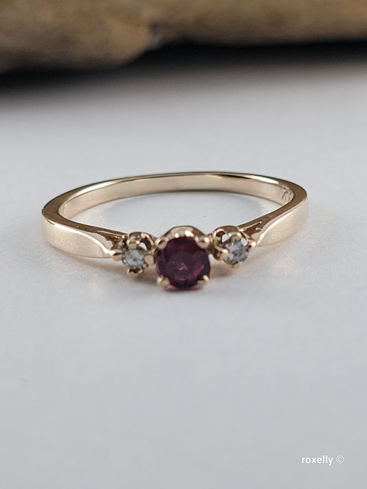 14K Yellow Gold Spinel and White Sapphires Ring Size 7.5 Solid Gold