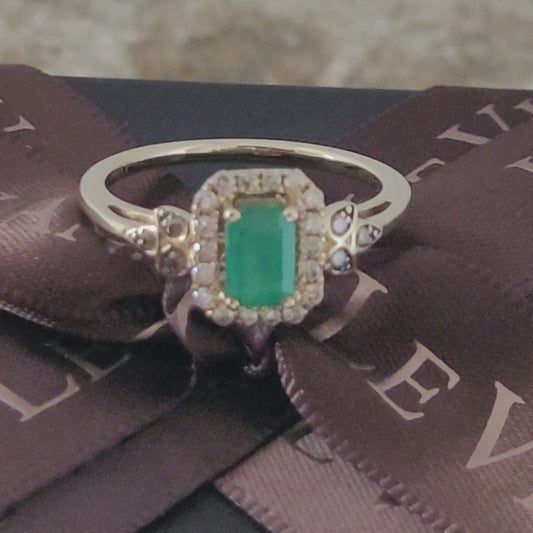 $3800 Ring, 14k Yellow Gold Natural Emerald and Genuine Diamonds, AMAZING!!