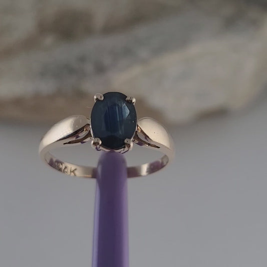 14K Yellow Gold Dark Blue Sapphire Gemstone Ring 7.75 Solid Gold