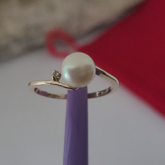 ❤️10k Size 6.25 Fancy Solid Yellow Gold Fresh-Water Pearl and Diamond Ring!