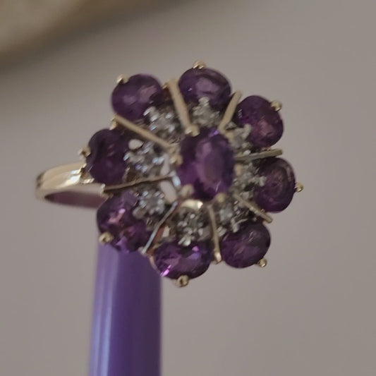 ❤️14k Size 6.75 Gorgeous Solid Yellow Gold Amethyst and Diamonds Flower-shaped Ring!