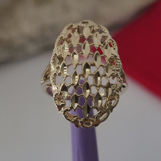 ❤️14k Size 6.5 Lovely Solid Yellow Gold Diamond-Cut Filigree Design Ring!