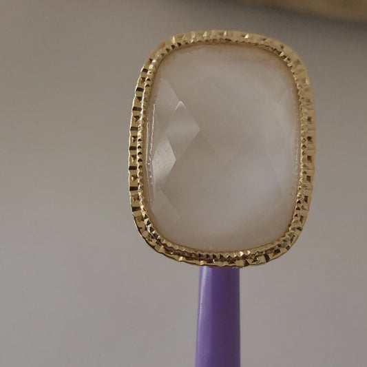 14K Rose and Yellow Gold Natural Quartz Ring Size 5 Solid Gold Made in Italy