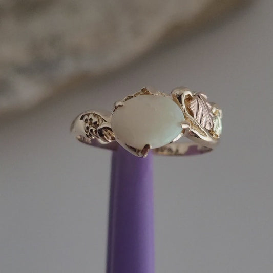 ❤️ 10k Size 5 Precious Solid Yellow Gold Two Leaves and Fire Opal Black Hills Ring!