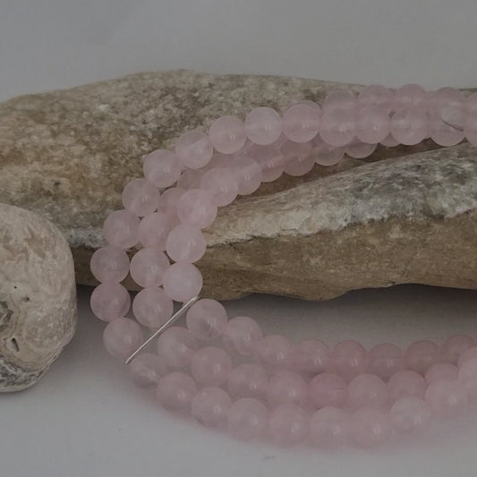 ❤️925 Fancy Sterling Silver and Natural Rose Quartz Beaded 3-Row Stretch Bracelet!