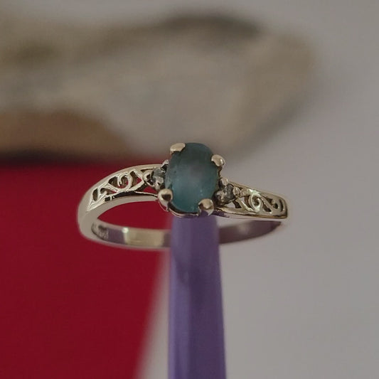 ❤️10k Size 6.5 Vintage Solid Yellow Gold Blue Topaz and Diamonds Ring!