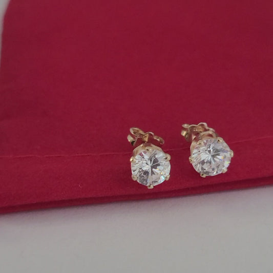 ❤️14k Beautiful Solid Yellow Gold Cubic Zirconia Solitaire Stud Earrings!