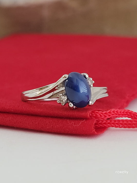 ❤️10k Size 7 Amazing Solid White Gold Dark Sapphire and Genuine Diamonds Ring!