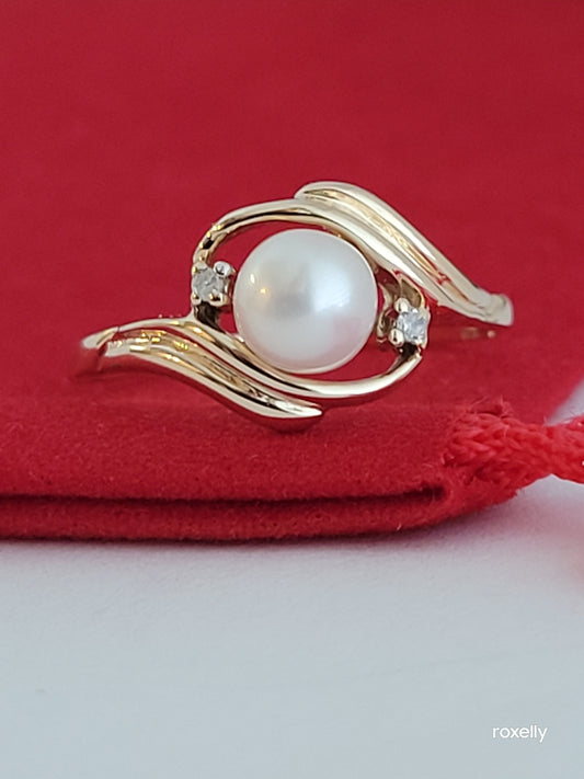❤️14k Size 5 Beautiful Solid Yellow Gold Fresh-Water Pearl and Diamonds Ring!