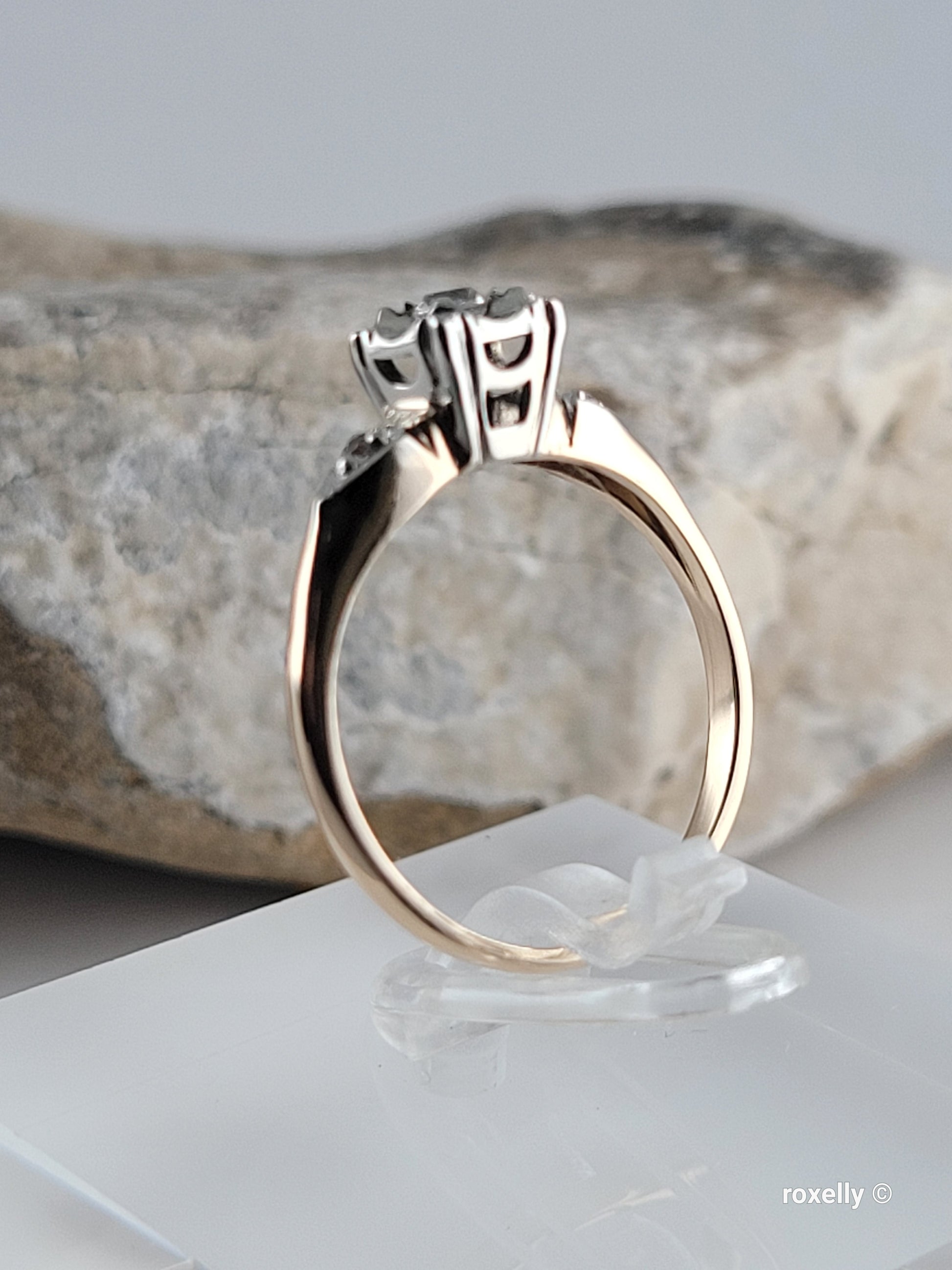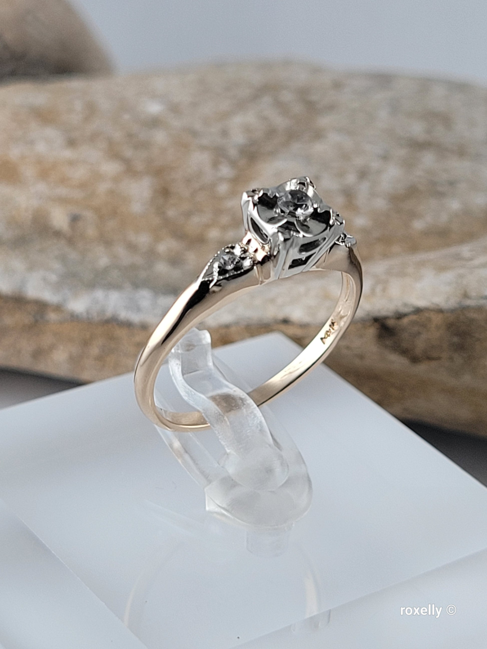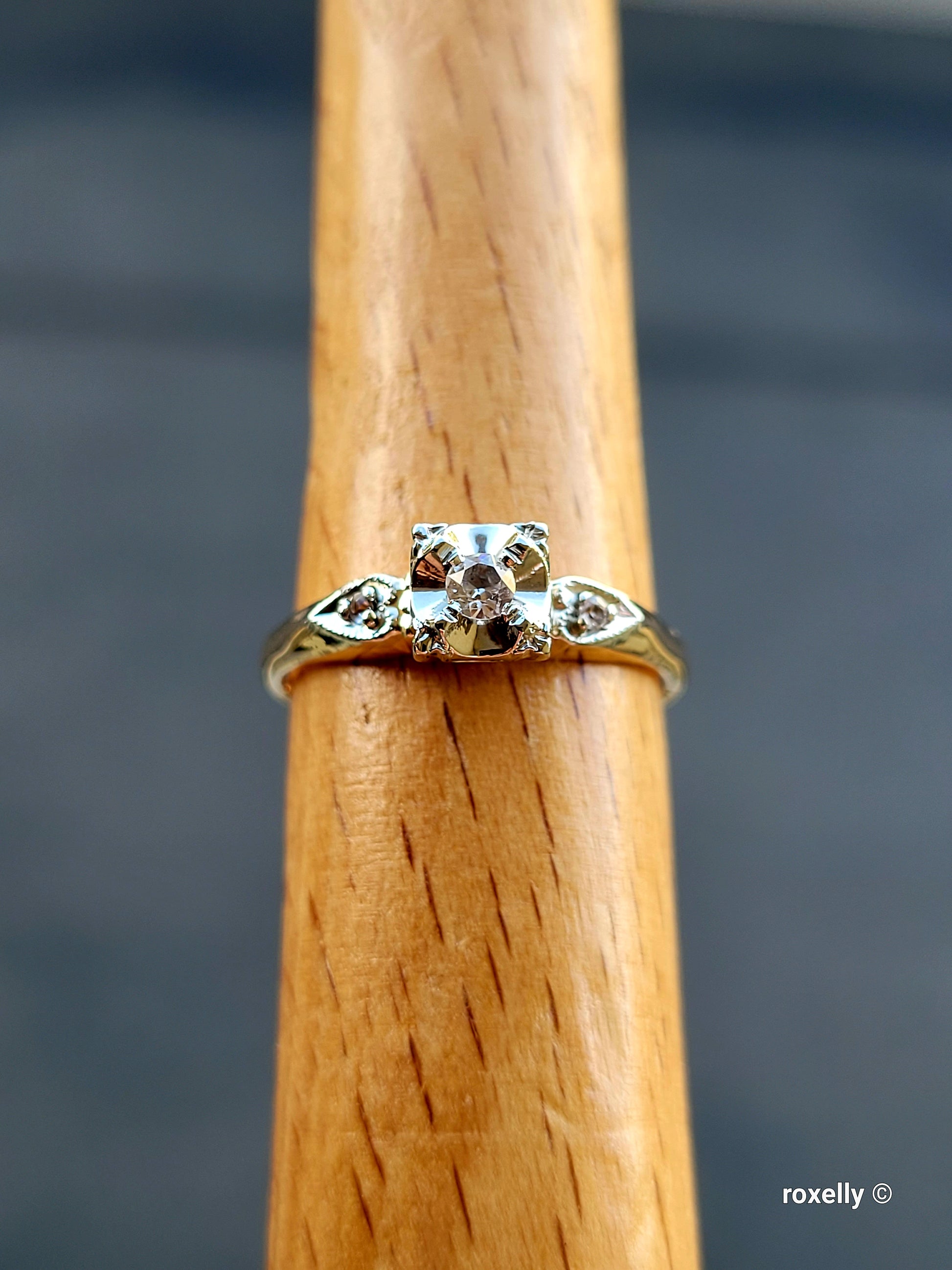 ❤️14k Size 6.75 Precious Solid Yellow and White Gold Diamond Art-Deco Ring!