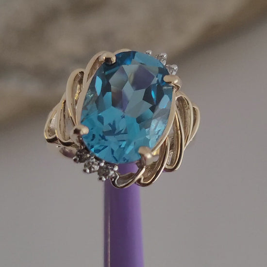 ❤️14k Size 6 Gorgeous Solid Yellow Gold Blue Topaz and Diamond Ring!