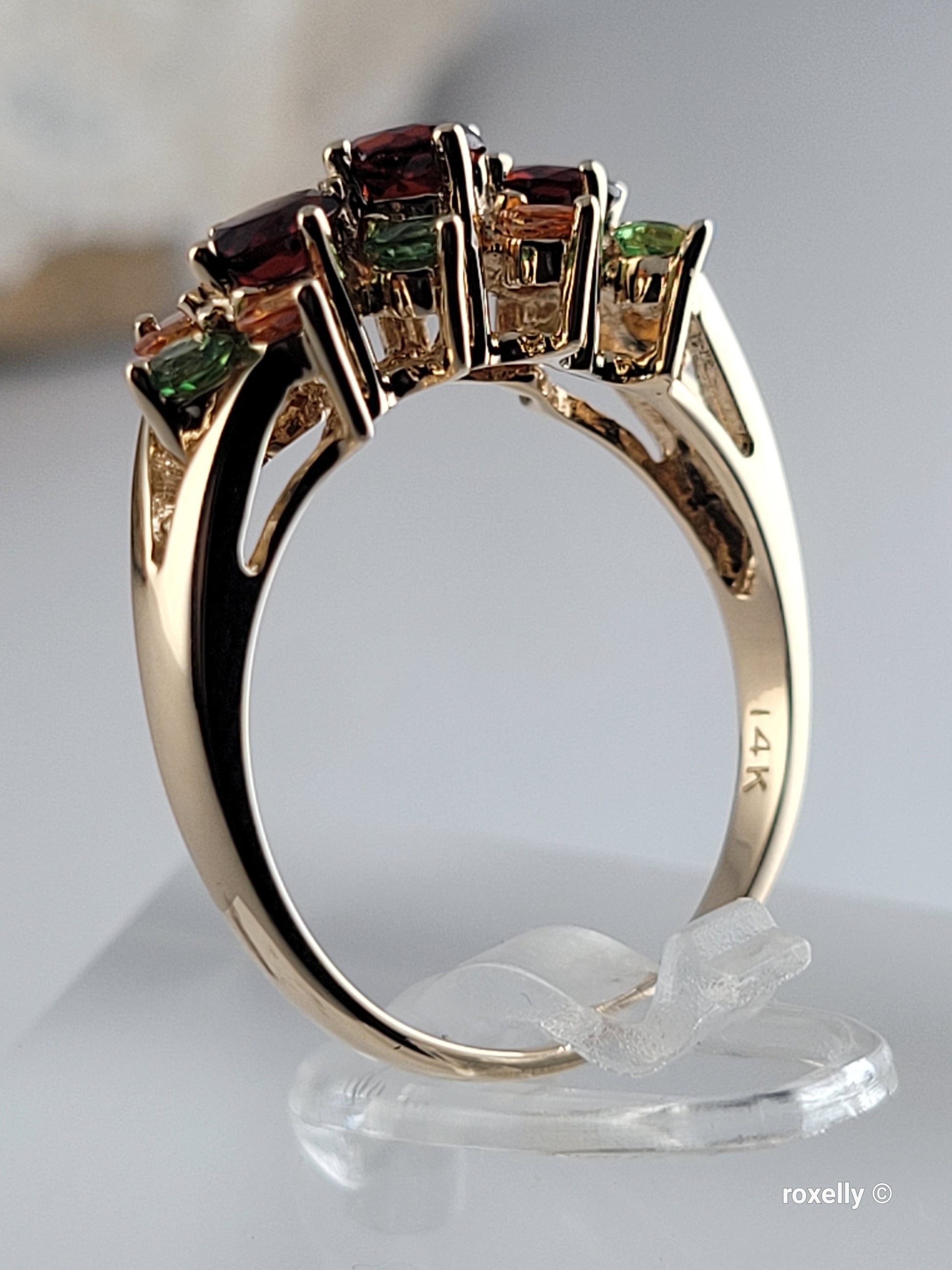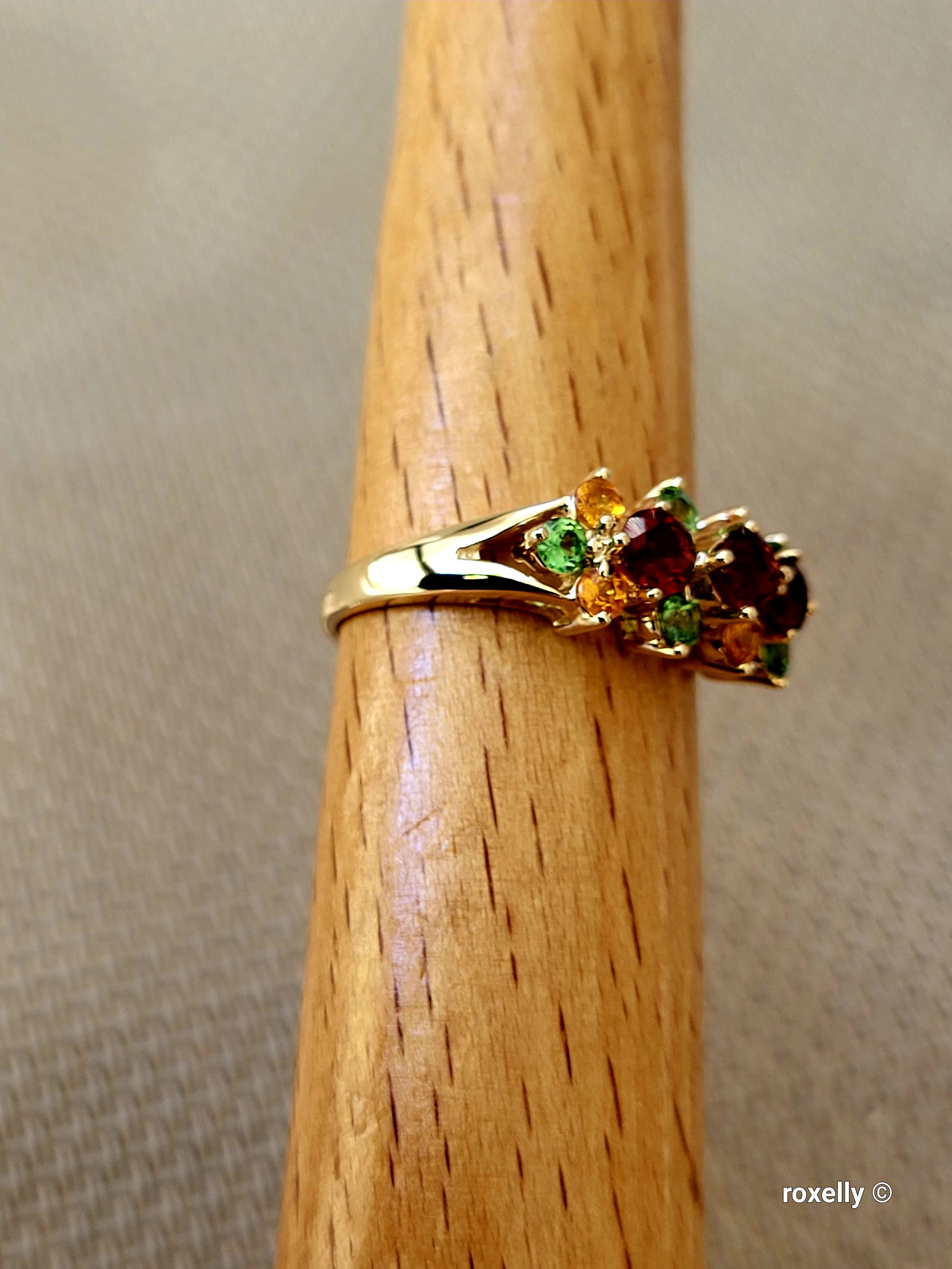 ❤️14k Size 7.75 Lovely Solid Yellow Gold Multi-Gemstone Cocktail Ring!