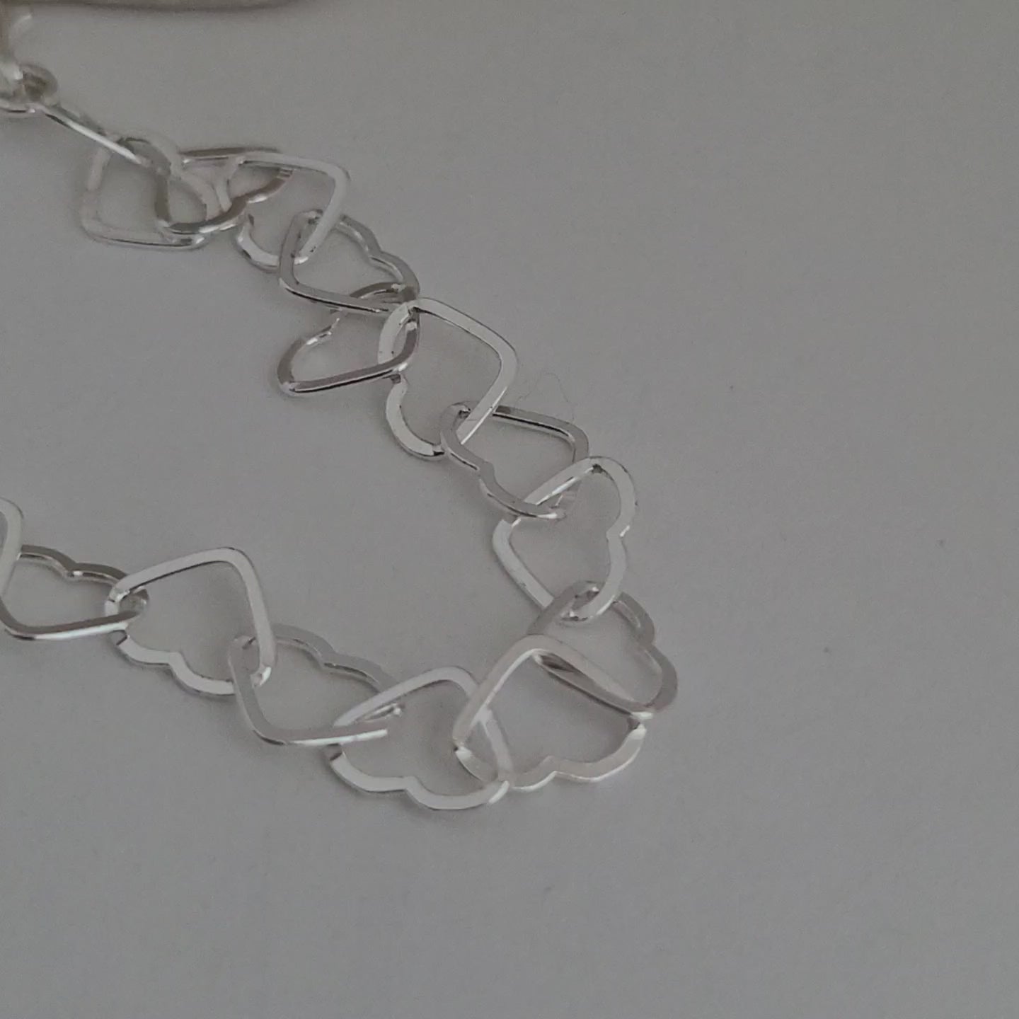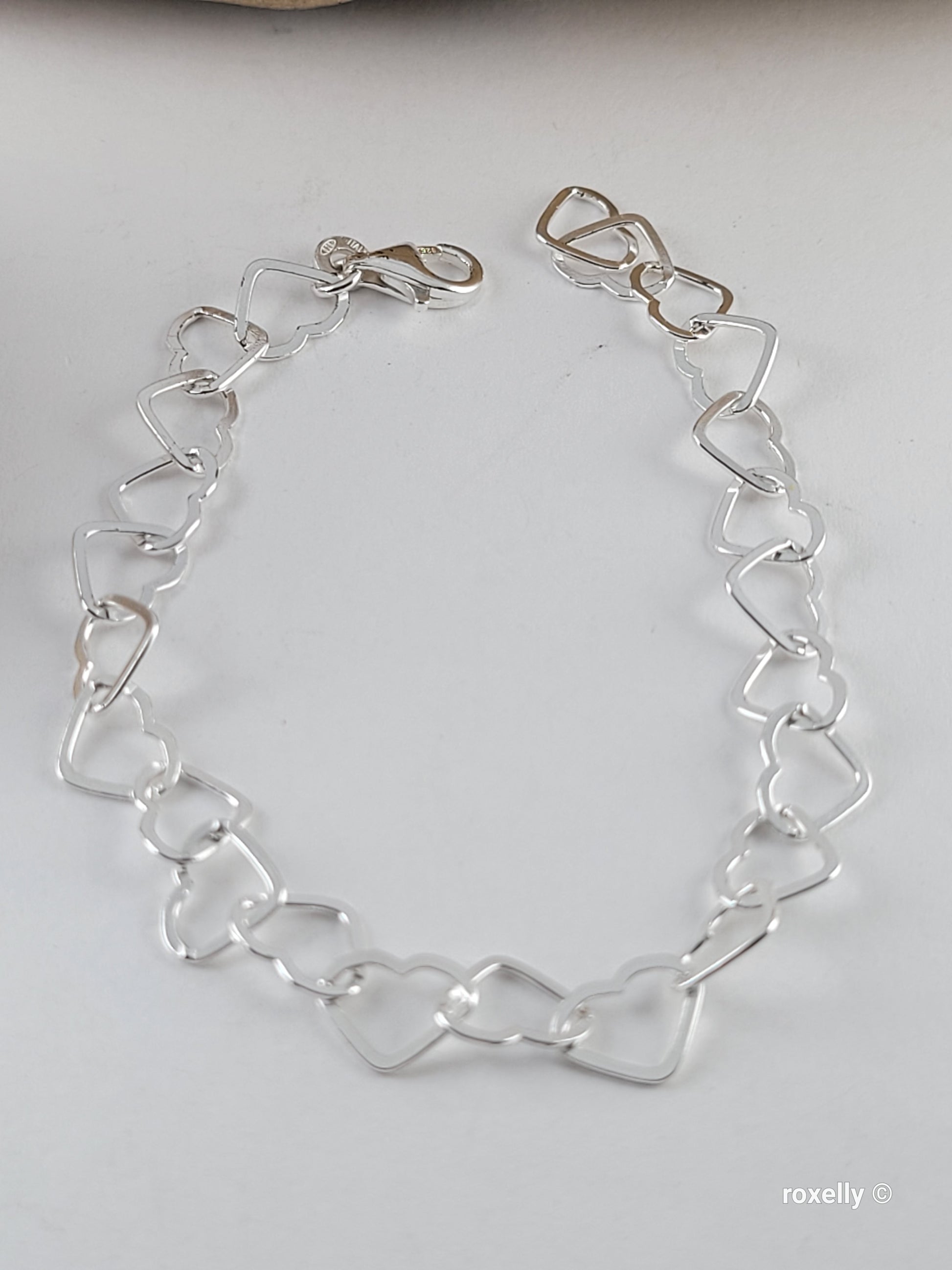 ♥️Sterling Silver Delicate Italian Heart-Shaped Link Bracelet, Beautiful