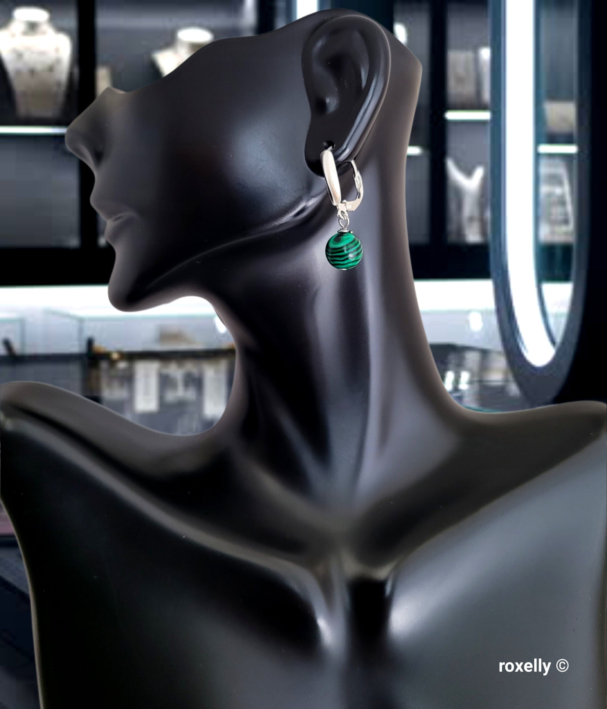 ♥️Sterling Silver Small Green Howlite Bead Leverback Earrings, Beautiful!!