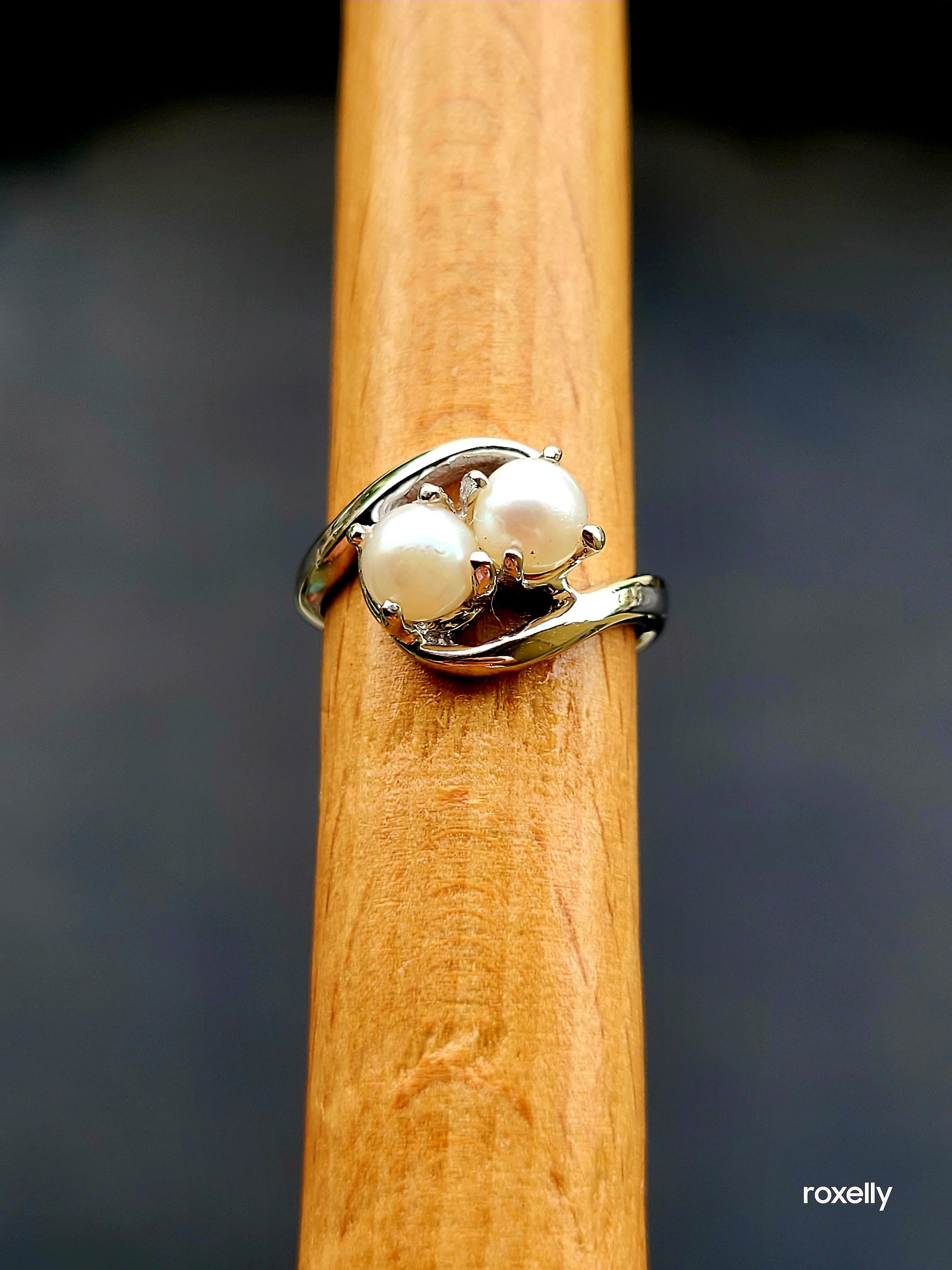 ❤️10k Size 3.25 Precious Solid White Gold Freshwater Pearls Petite Ring!