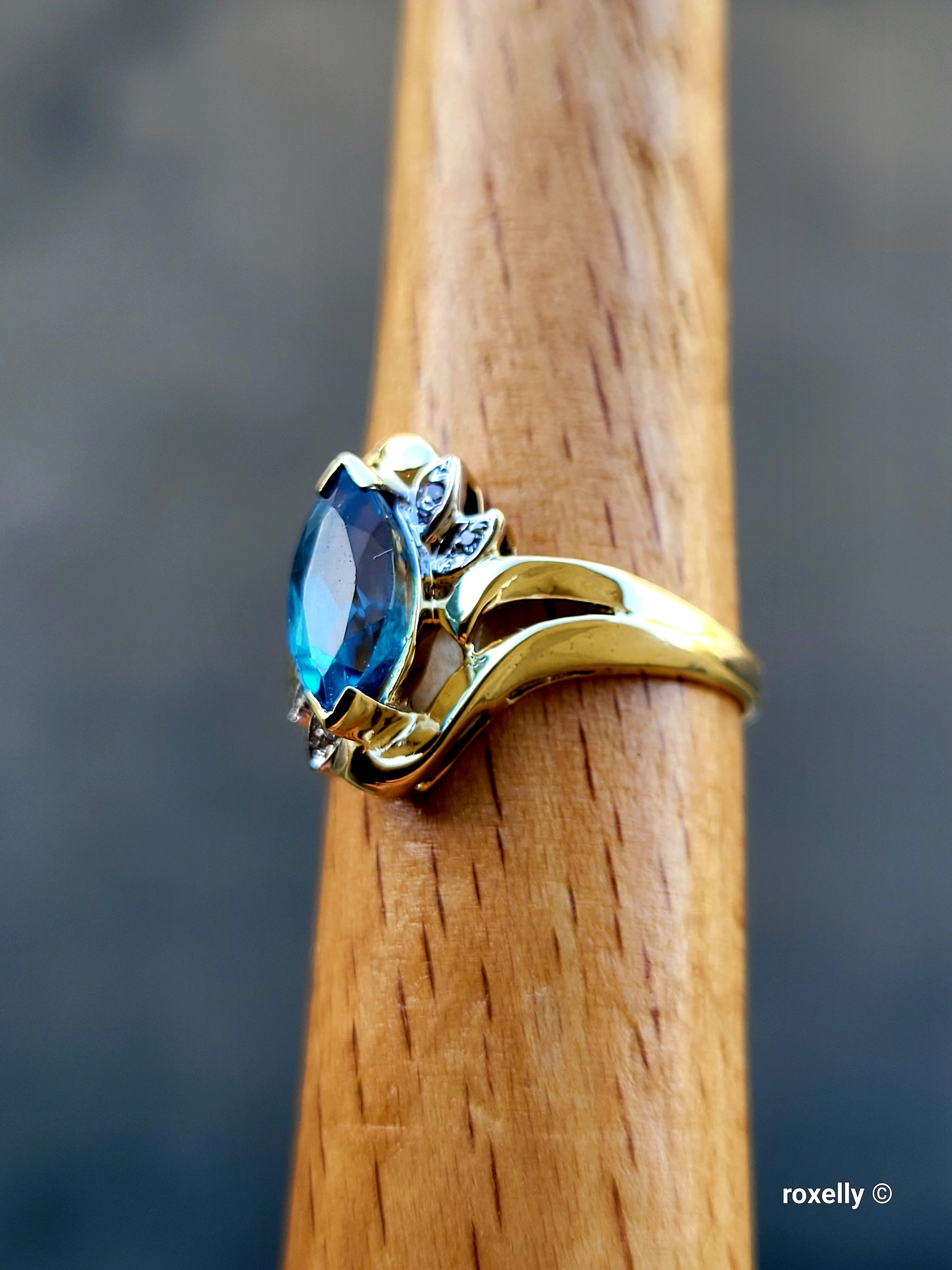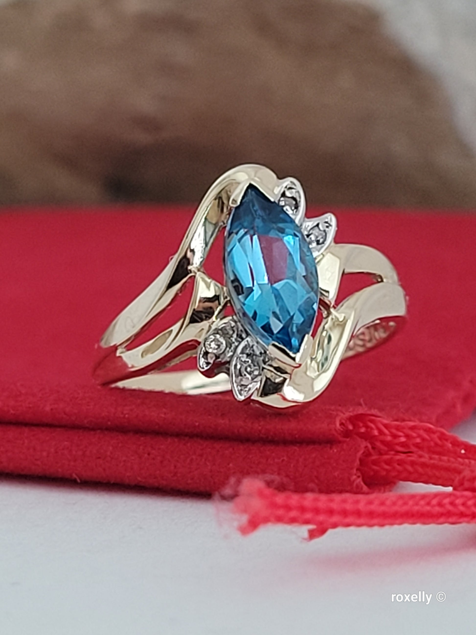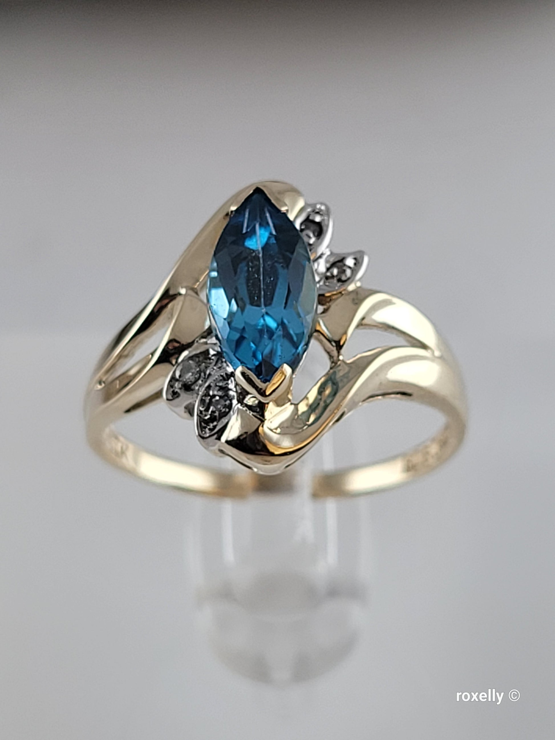 ❤️10k Size 6.75 Beautiful Solid Yellow Gold Blue Topaz and Diamond Ring!