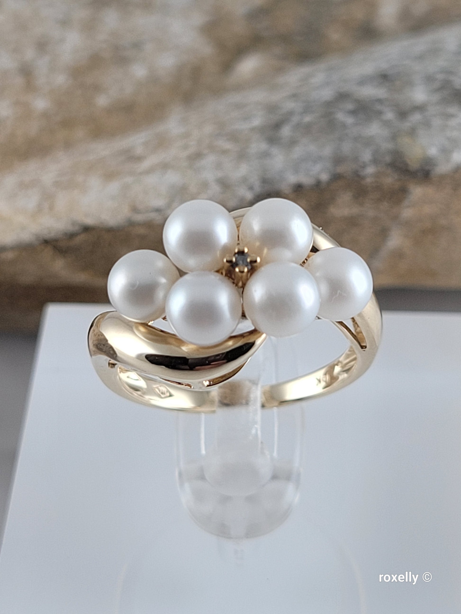 ❤️10k Size 6 Beautiful Solid Yellow Gold Fresh-Water Pearl and Diamond Ring!