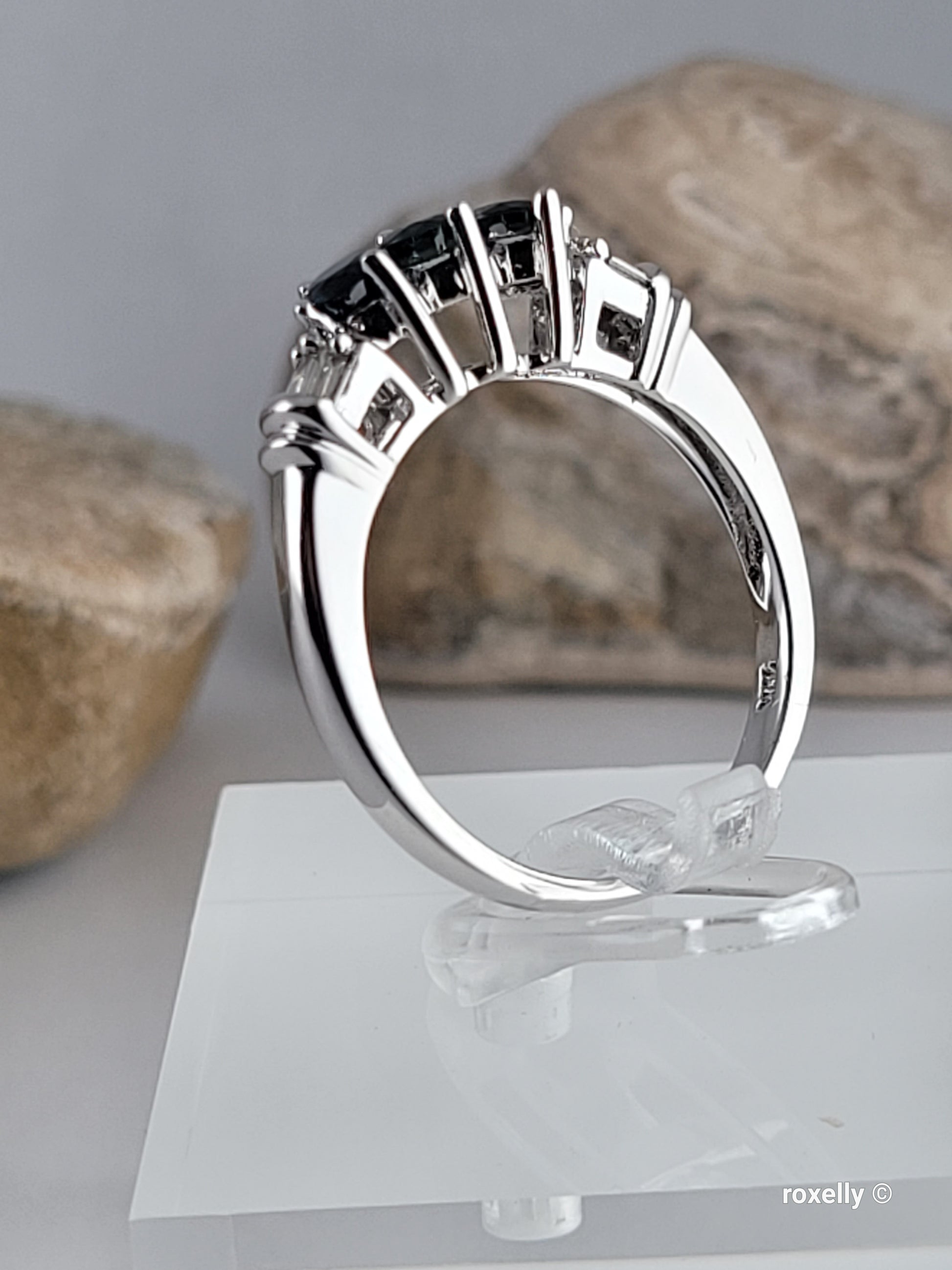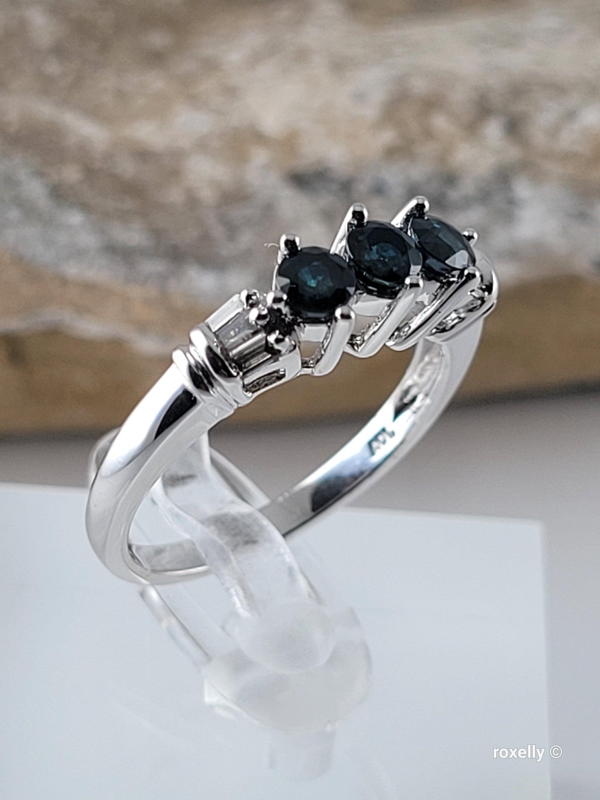 ✔️ 3 Beautiful round-cut dark sapphires in the center