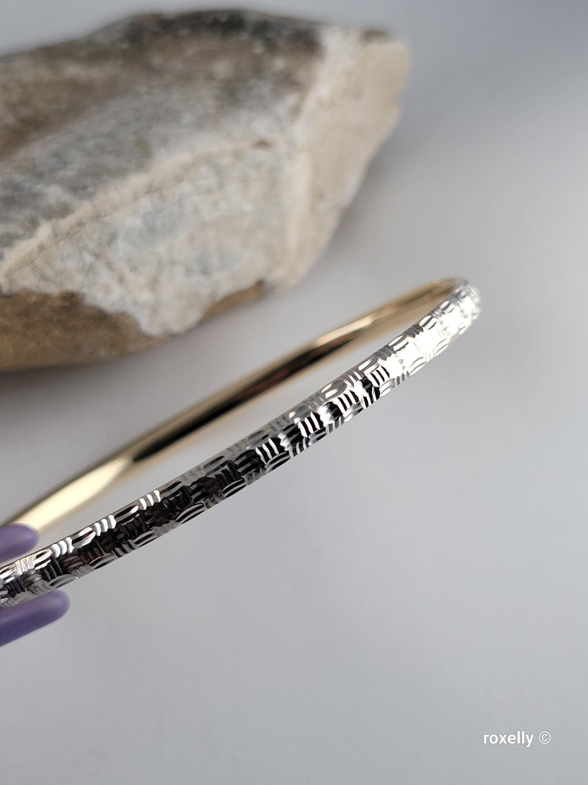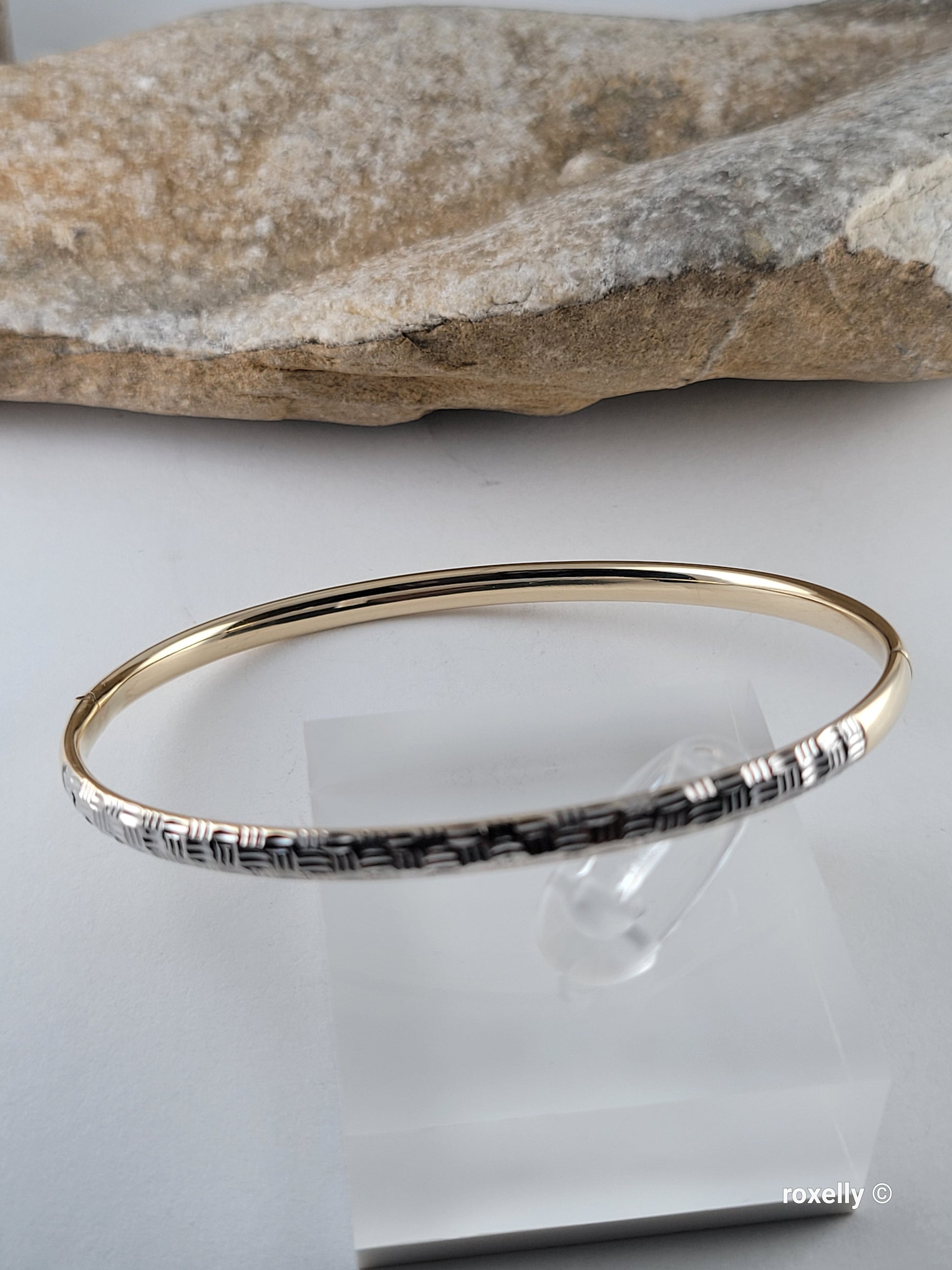 ❤️14k Fancy Solid White and Yellow Gold Tubular Design Bracelet, Millor Italy!