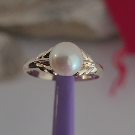 ❤️14k Size 6.75 Precious Solid Yellow Fresh-Water Pearl Ring!