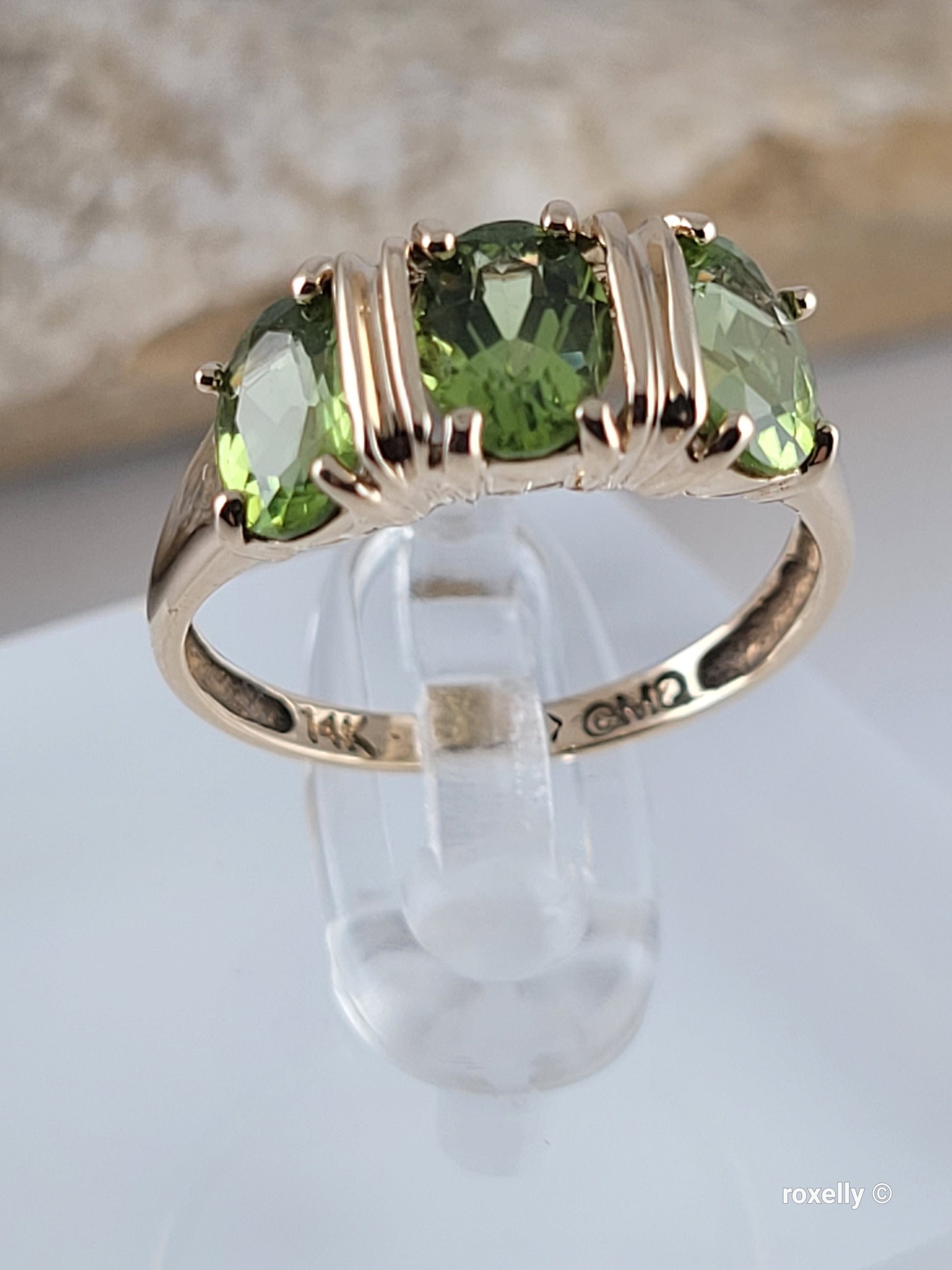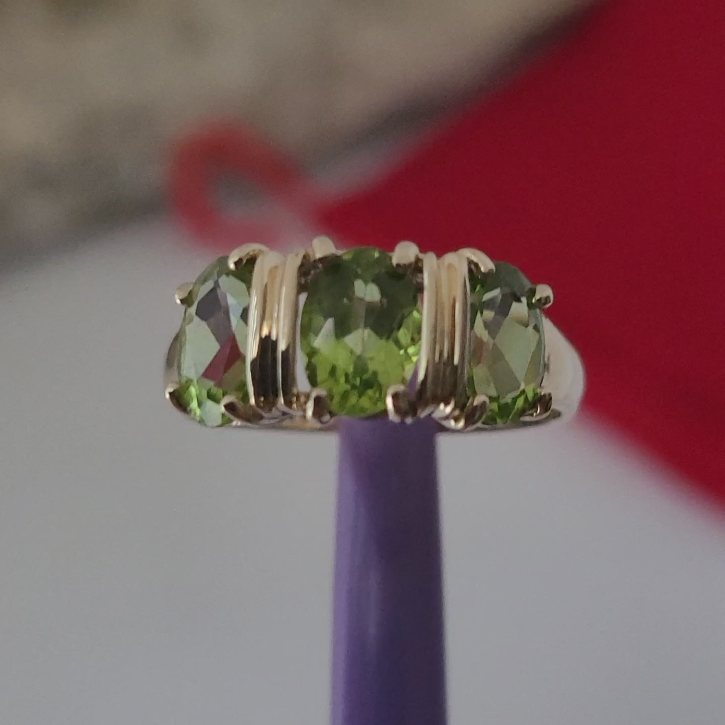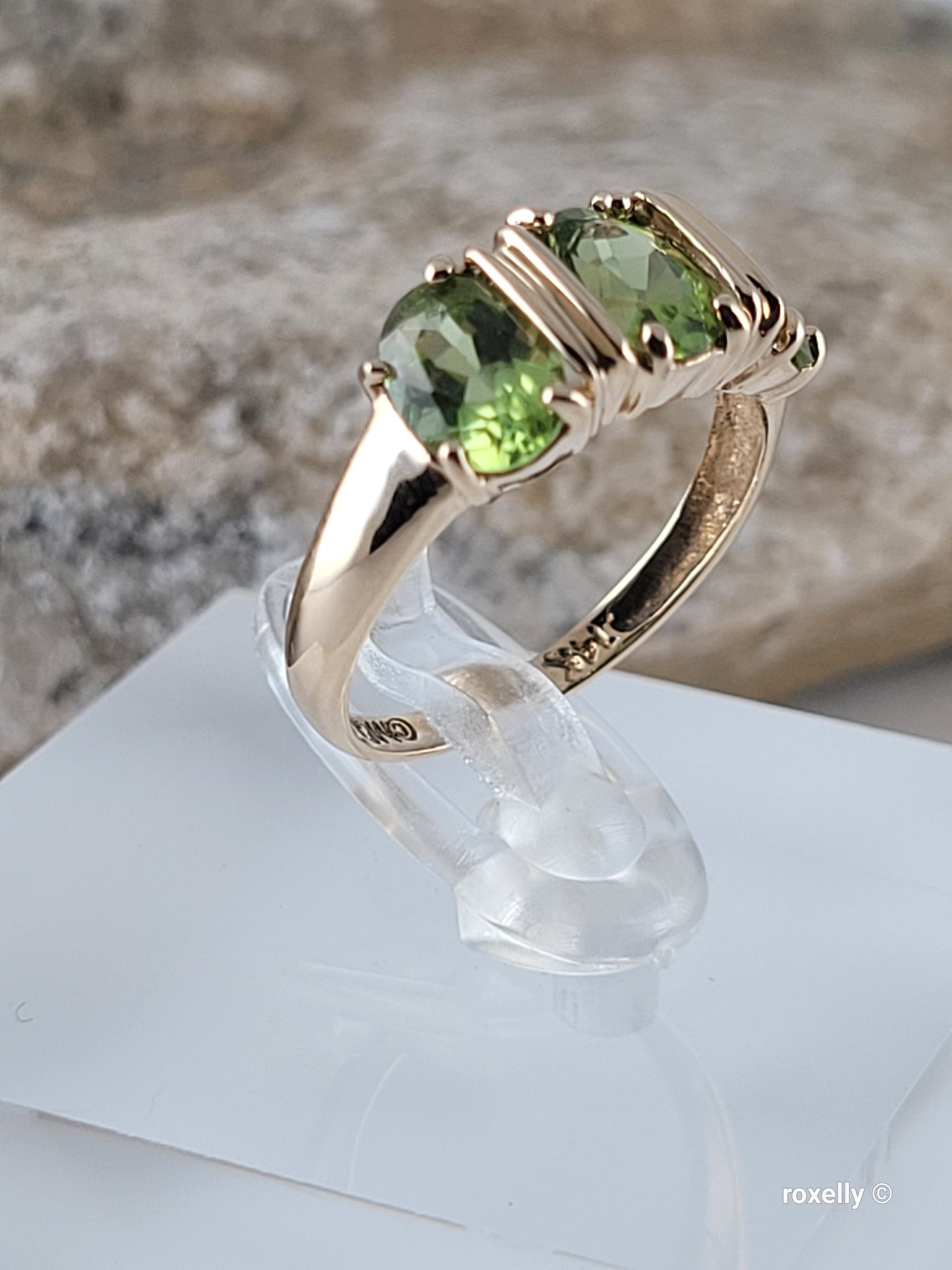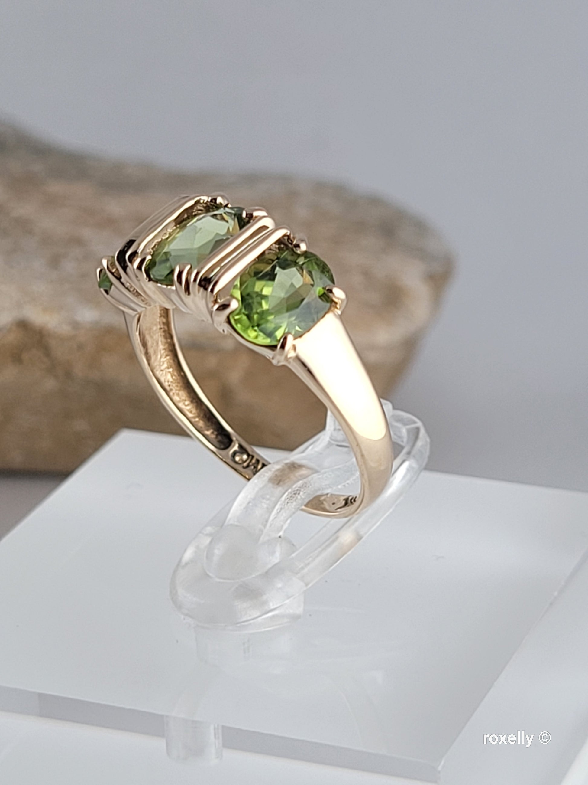 ✔️ 3 Precious oval-cut peridot gemstones in the center
