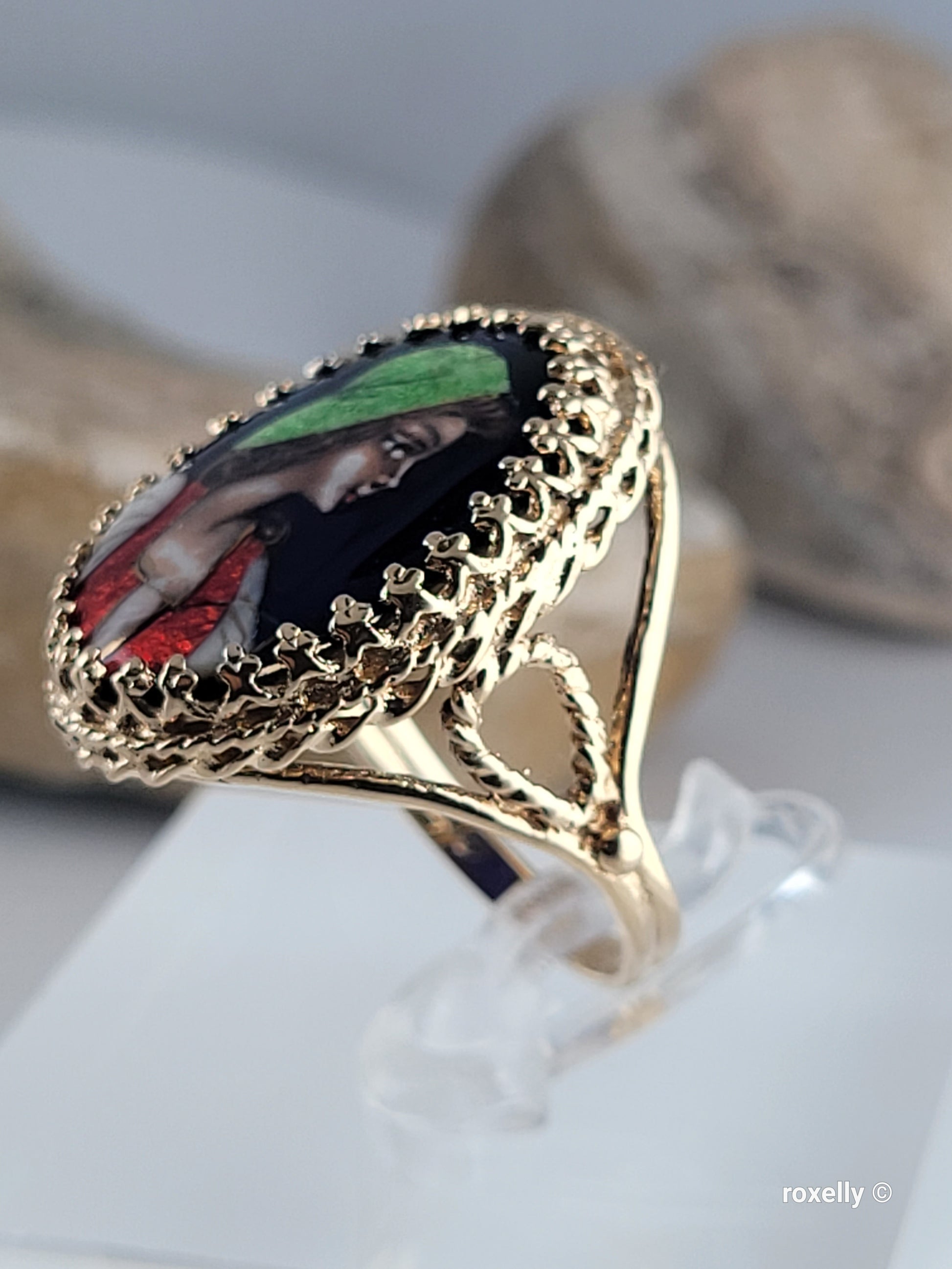 ❤️14k Size 7.25 Antique Solid Yellow Gold Woman Portrait France Enamel Imperial Ring!