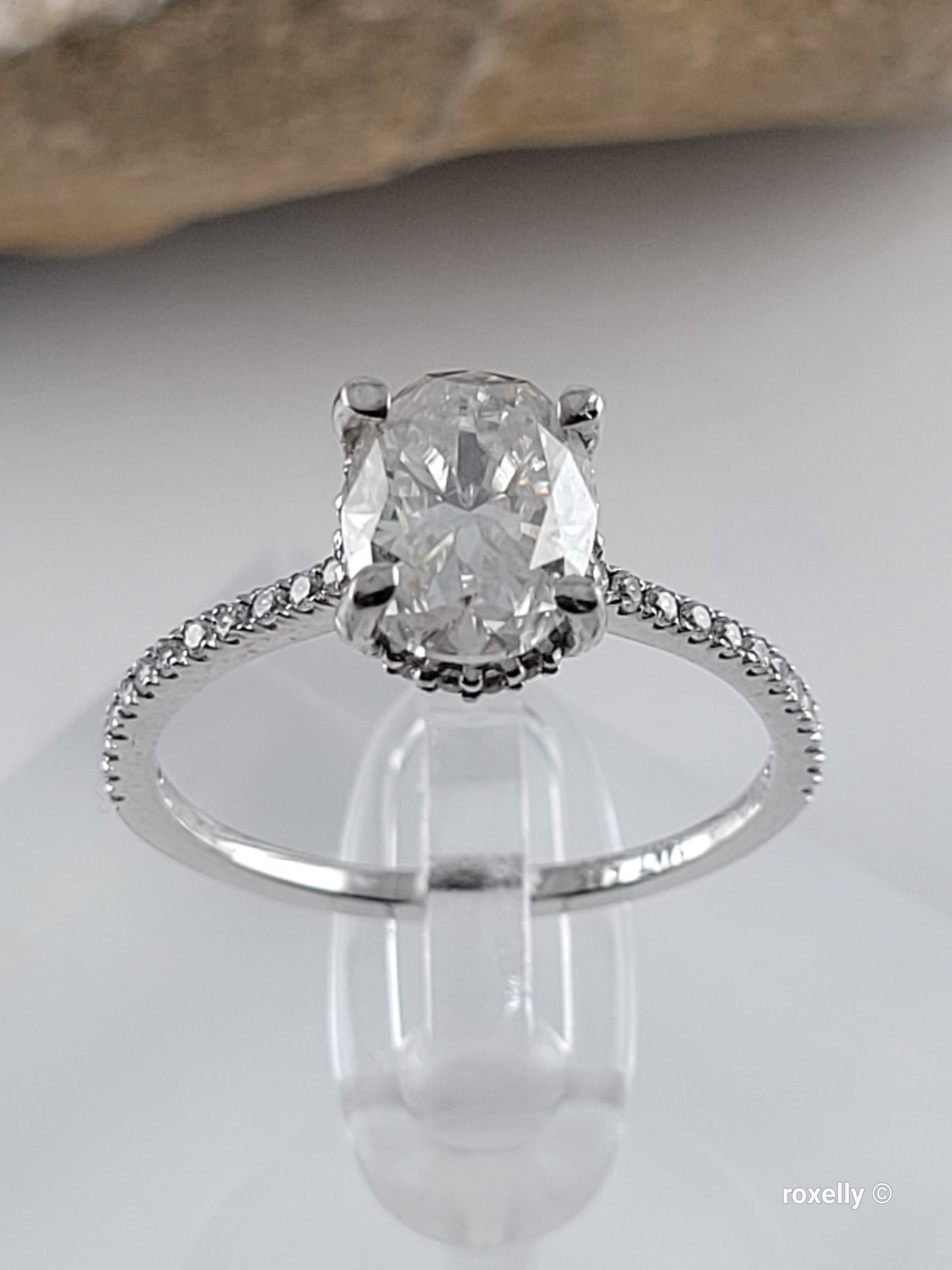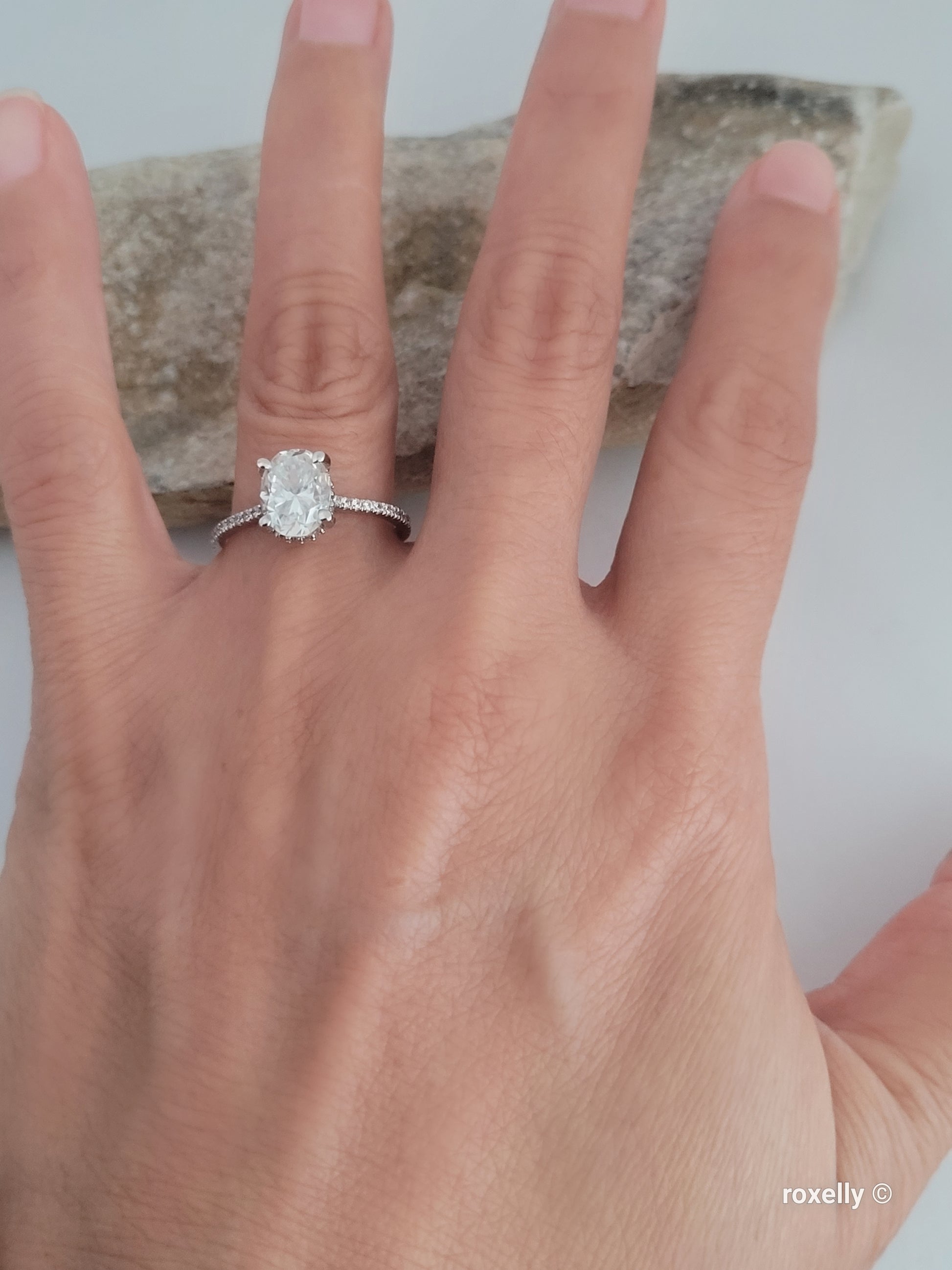 ✔️ 1 Beautiful oval-cut white moissanite in the center