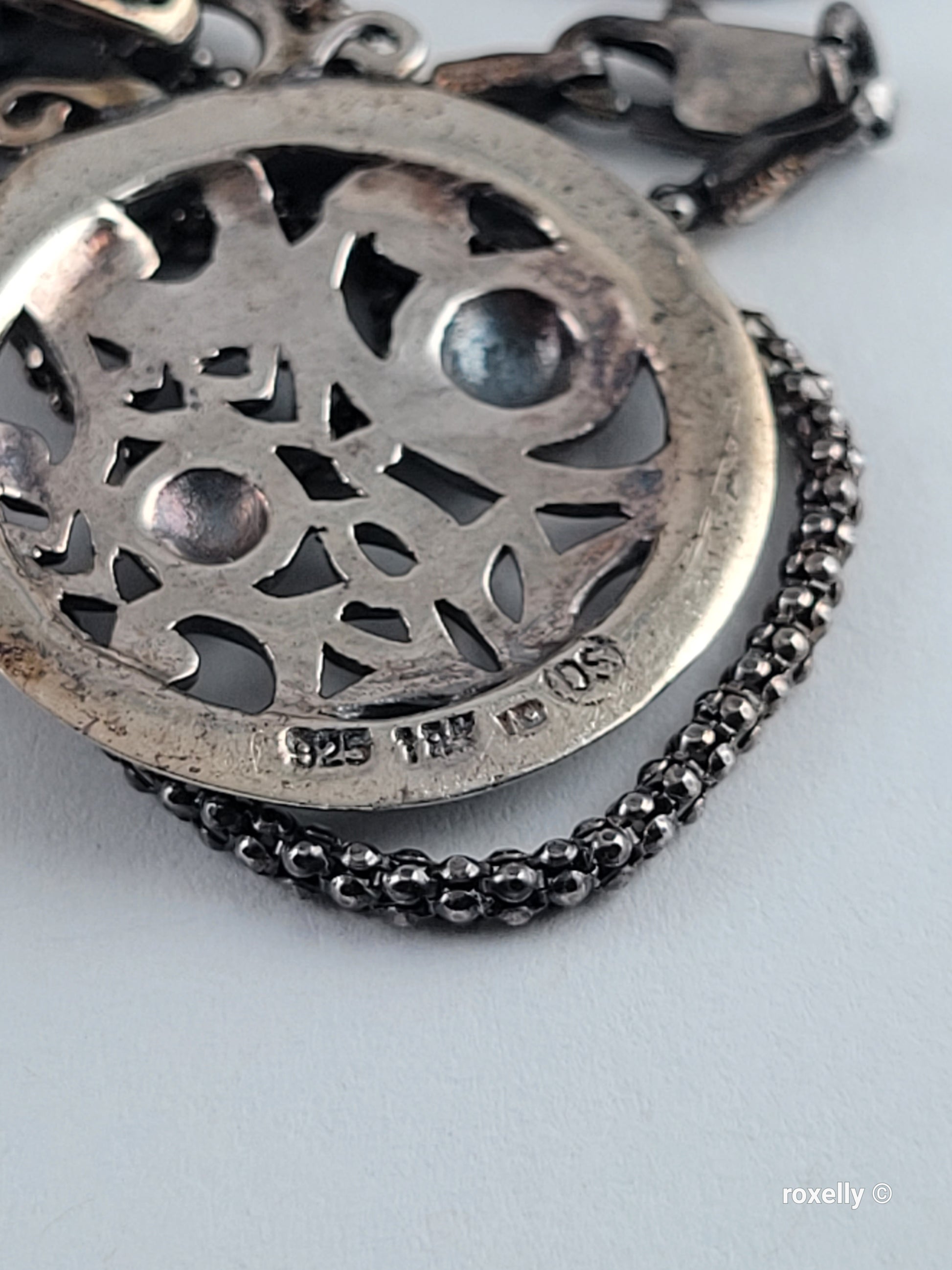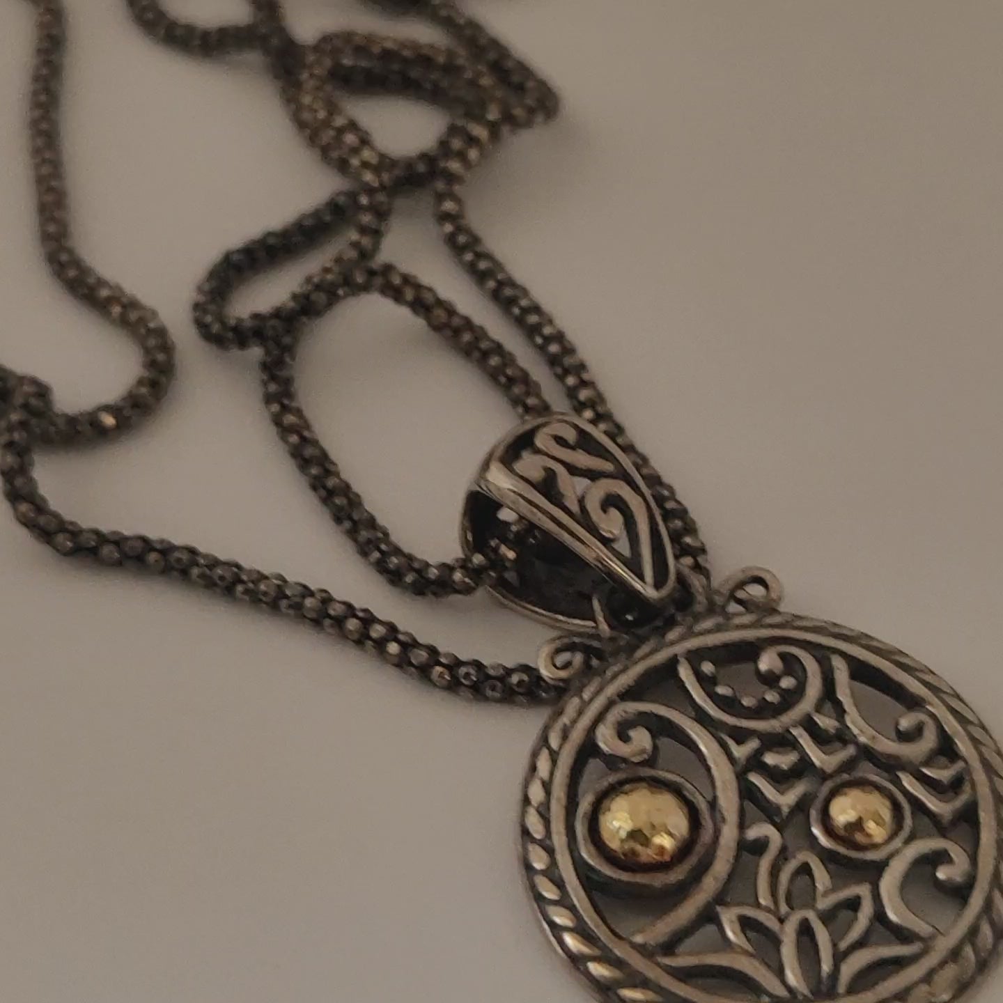 ❤️925 & 18k Vintage Oxidized Sterling Silver Necklace and Medallion Pendant!