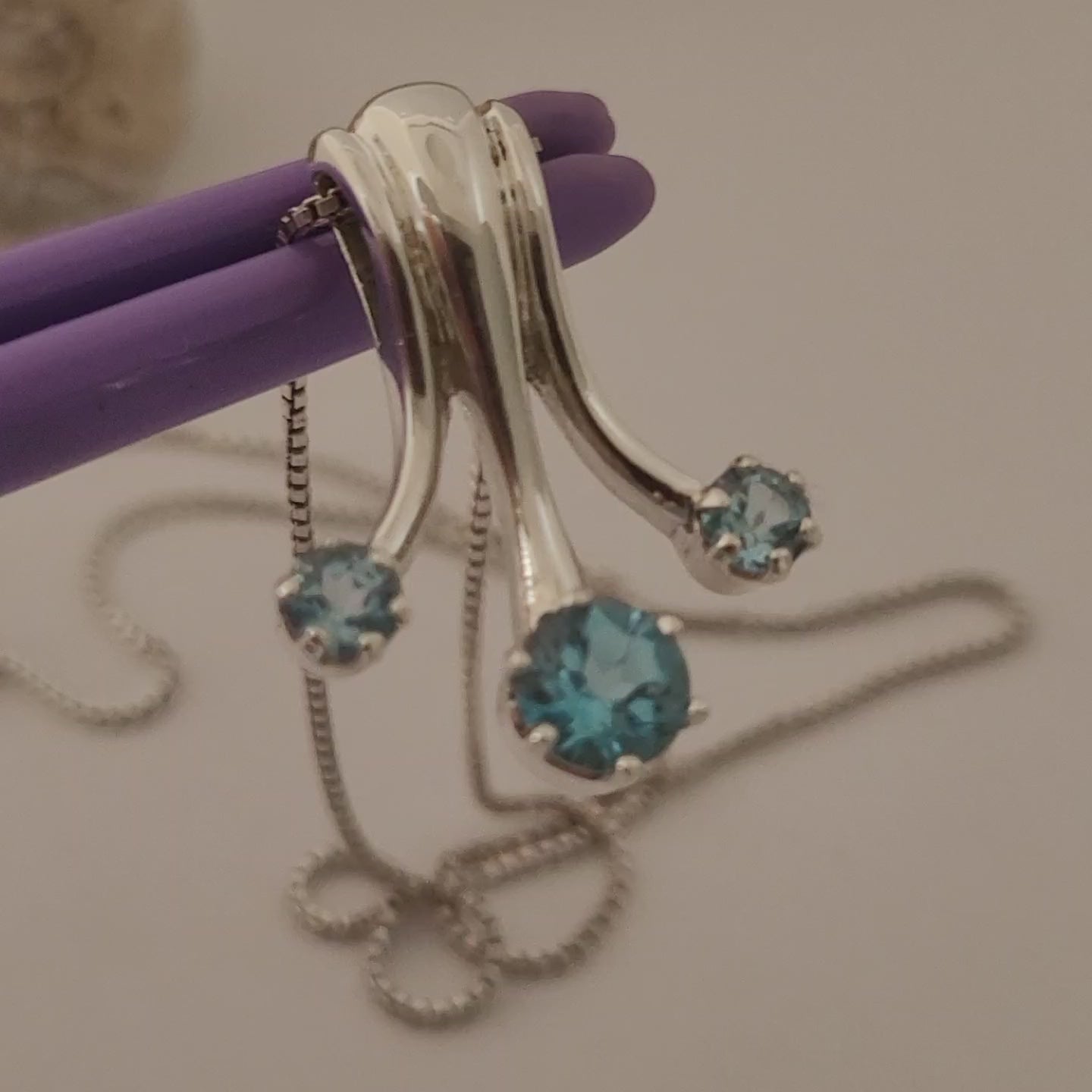 ❤️925 Amazing Sterling Silver Blue Topaz Necklace and Pendant!