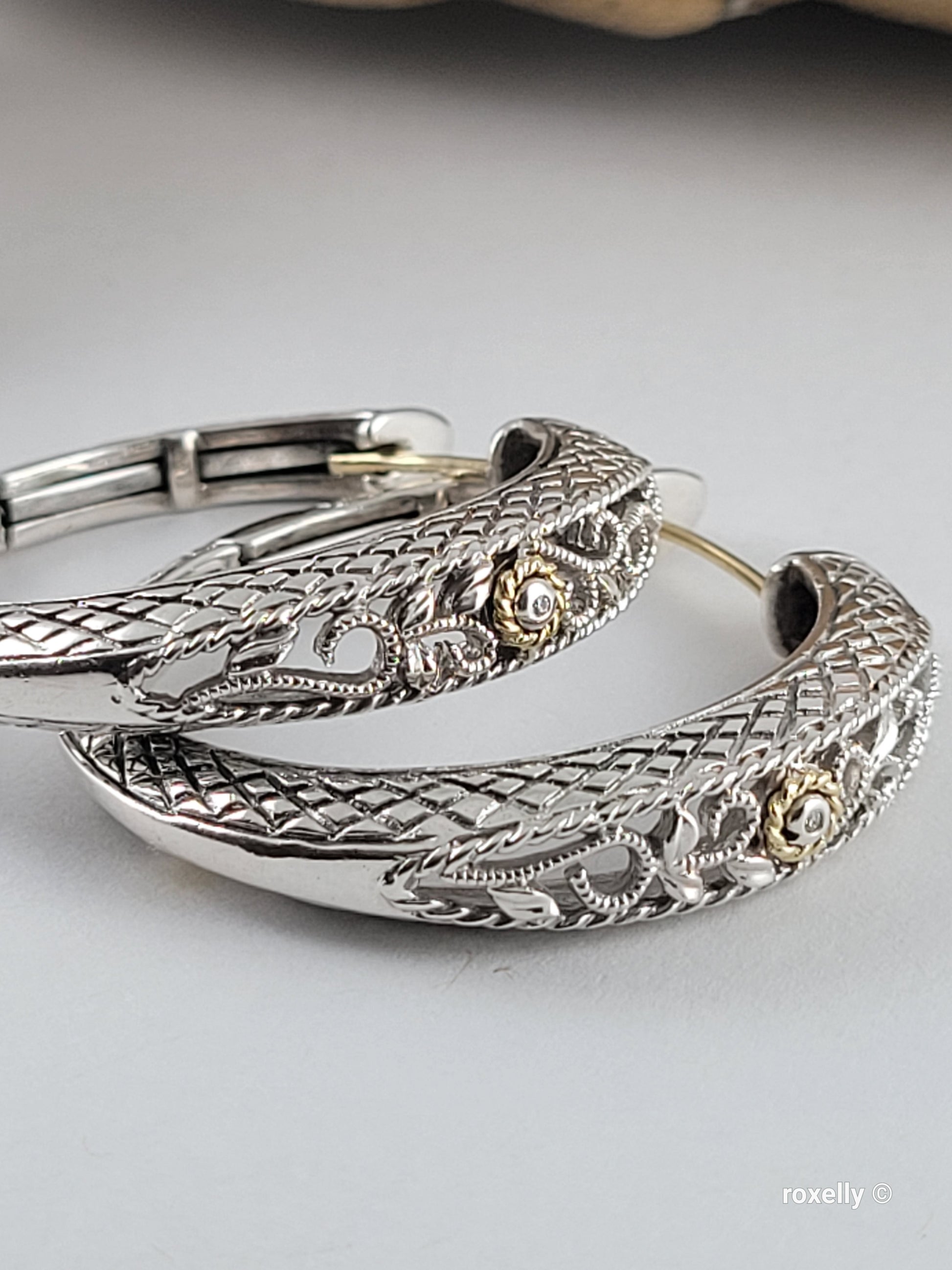 ❤️925 Precious Sterling Silver & 18k Solid Gold Diamond Filigree Design Earrings!