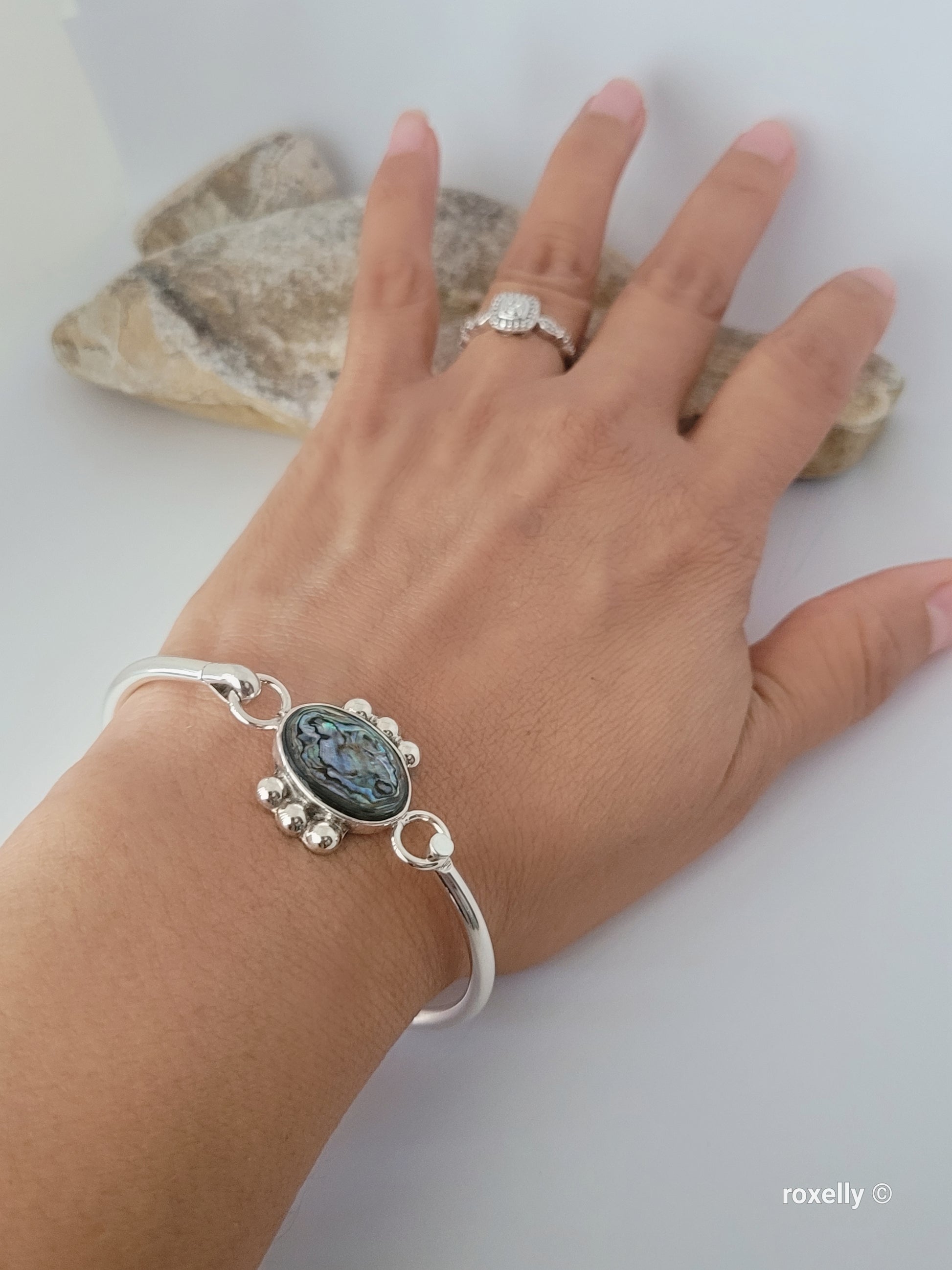 ❤️925 Precious Sterling Silver Paua Shell Bangle Design Bracelet!