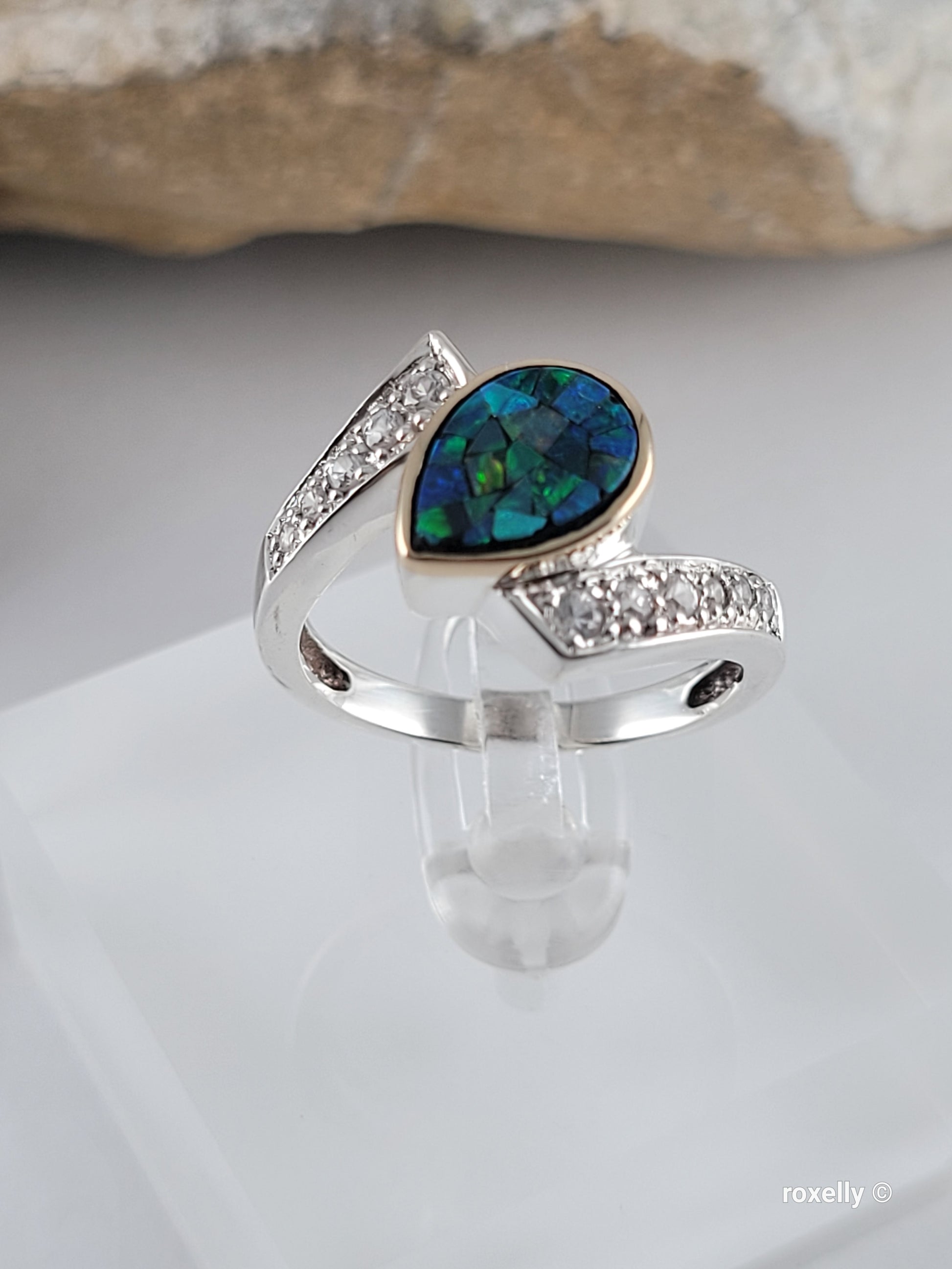 ✔️ 1 Beautiful drop-shaped mosaic opal in the center