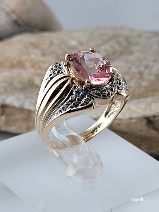 ❤️10k Size 7.5 Beautiful Solid Yellow Gold Pink Tourmaline and Diamond Ring!